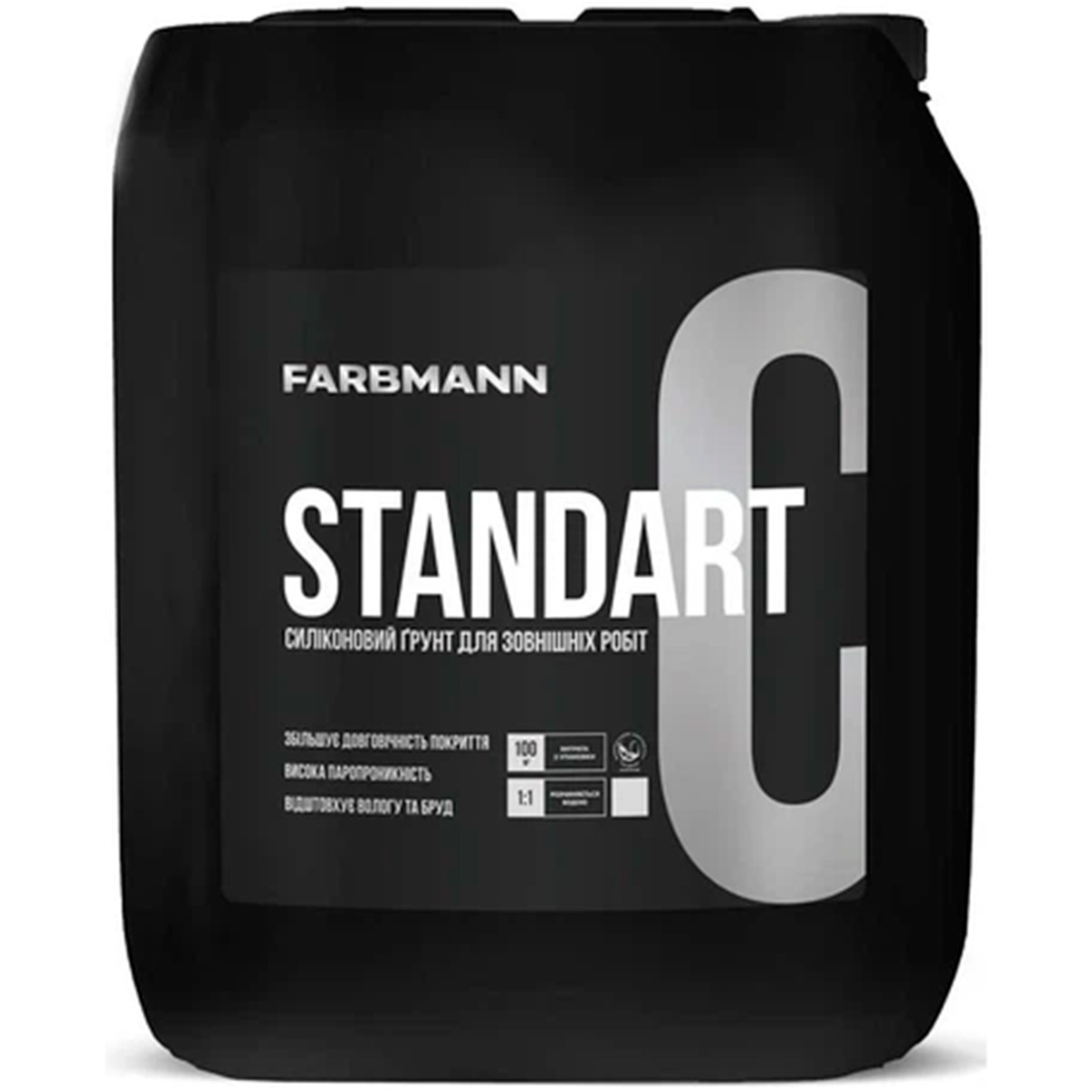 Farbmann Standart C — професійна силіконова ґрунтовка, створена для зміцнення мінеральних фасадних основ і підвищення адгезії наступних оздоблювальних матеріалів. Завдяки силіконовій модифікації глибоко проникає в пори поверхні, зменшує водопоглинання та підвищує стійкість основи до атмосферних впливів. Забезпечує рівномірне висихання та покращує міцність фінішних покриттів, таких як фасадні фарби, штукатурки та шпаклівки.